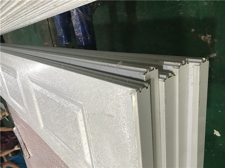 4、車庫門的門板是采用進(jìn)口的雙層彩鋼板,門板總厚度4-5公分,門體中間采用國際公認(rèn)的保溫隔熱隔音材料——聚胺酯。