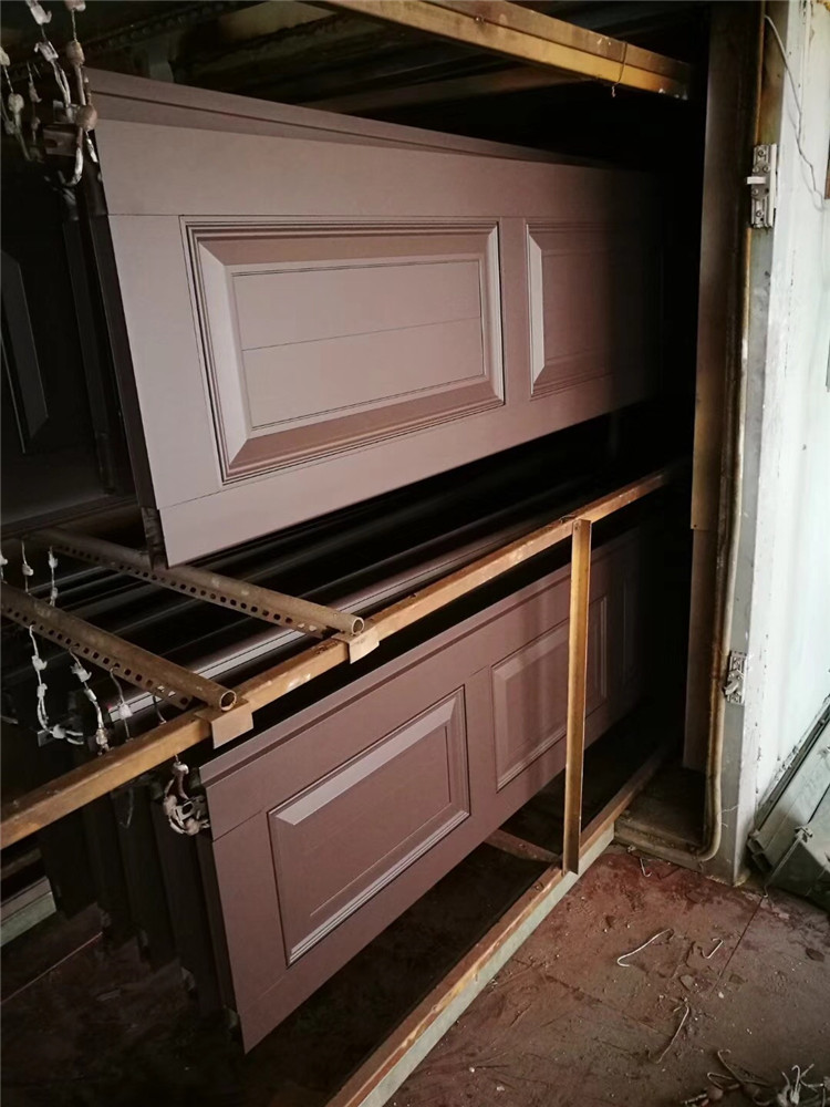 ④門(mén)體表面壓方框,同時(shí)表面進(jìn)行壓橘皮紋處理,具有浮雕效果。